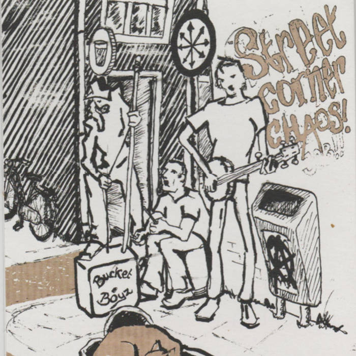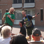 Three street musicians from amsterdam/tennessee. Banjo, Gut bucket and Chinese chopstick